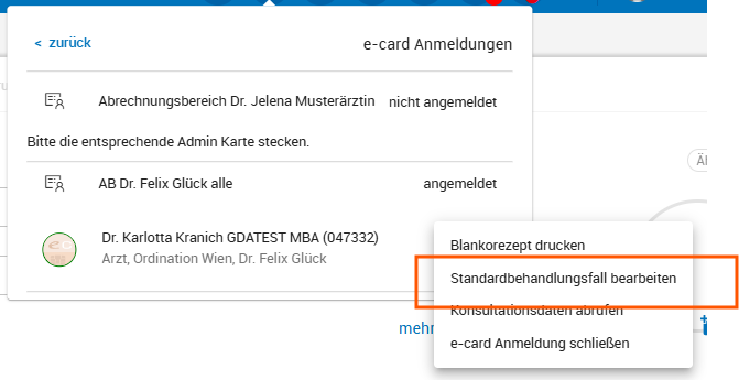 Im e-Card-Popper kann der Behandlungsfall jederzeit geändert werden, dazu