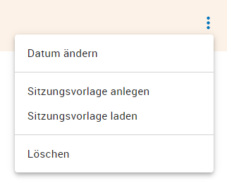 Hauptmenü (oder auch Burgermenü) der Karteikarte mit verschiedenen Funktionen. Mit einem Klick auf das Menü werden die Optionen angezeigt. Z. B. können Sie eine neue Sitzung zu einem bestimmten Tag anlegen oder Sie können die Daten der Karteikarte ausdrucken oder exportieren. |