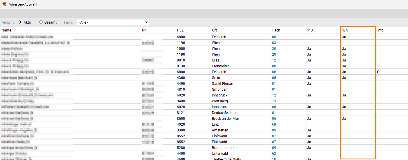 - Anzeige Wahlarzt Adressauswahl: Bei Adressauswahl wird nun angezeigt, ob es sich um einen Wahlarzt handelt. Diese Information kann zur jeweiligen Arzt Adresse erfasst werden: