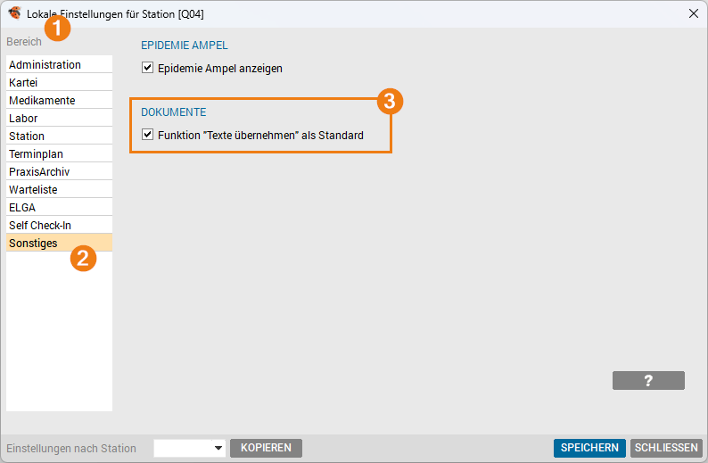 Sie können einstellen, ob der Modus "Texte übernehmen" standardmäßig (d. h. per Doppelklick) gewählt werden soll. Wählen Sie dazu in den lokalen Einstellungen SETUP – LOKAL – SONSTIGES die Funktion "Texte übernehmen" als Standard".