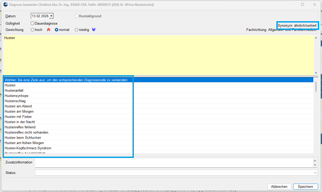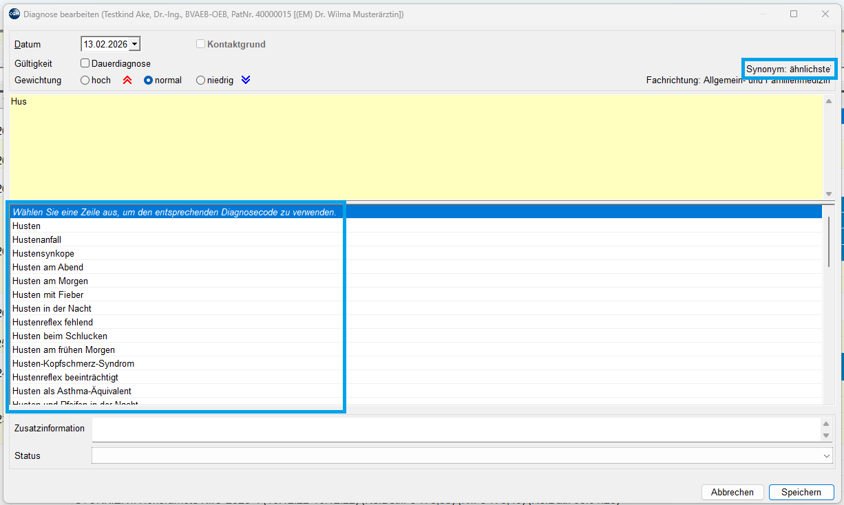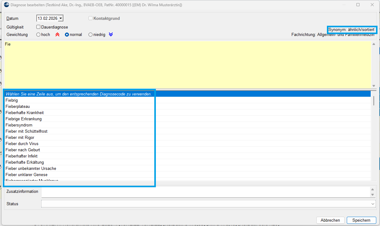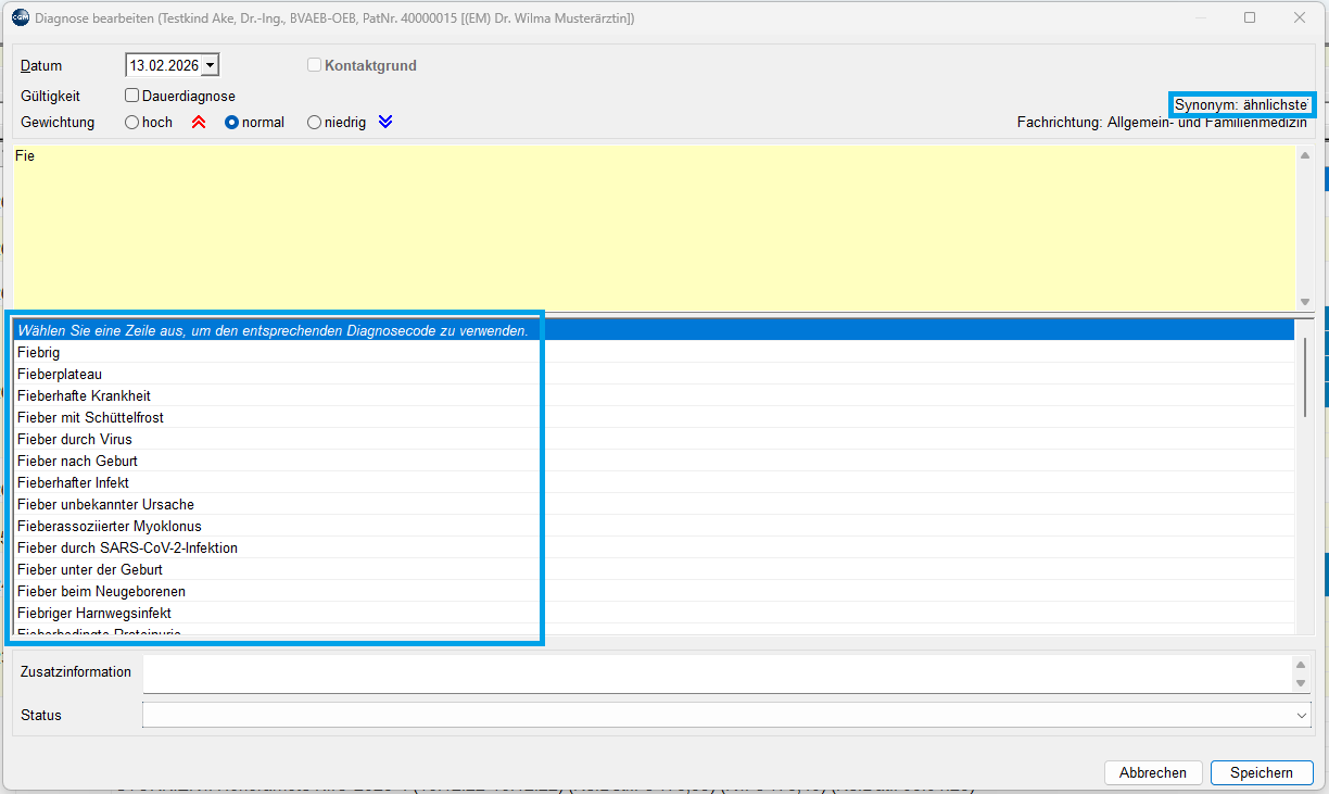 - Diagnoseeingaben Synonyme zur Auswahl anbieten