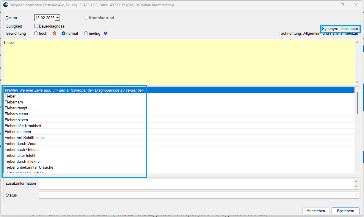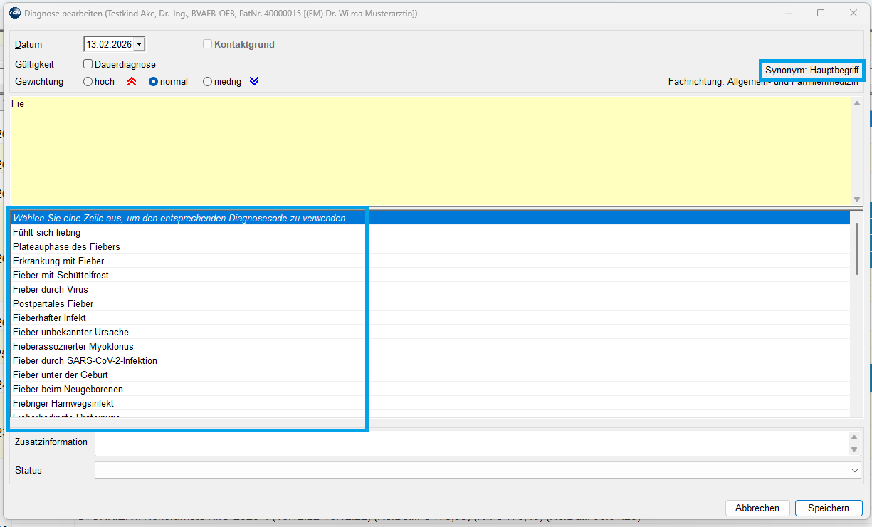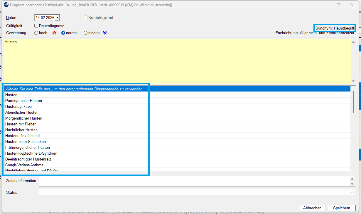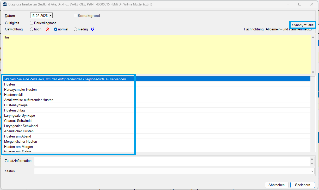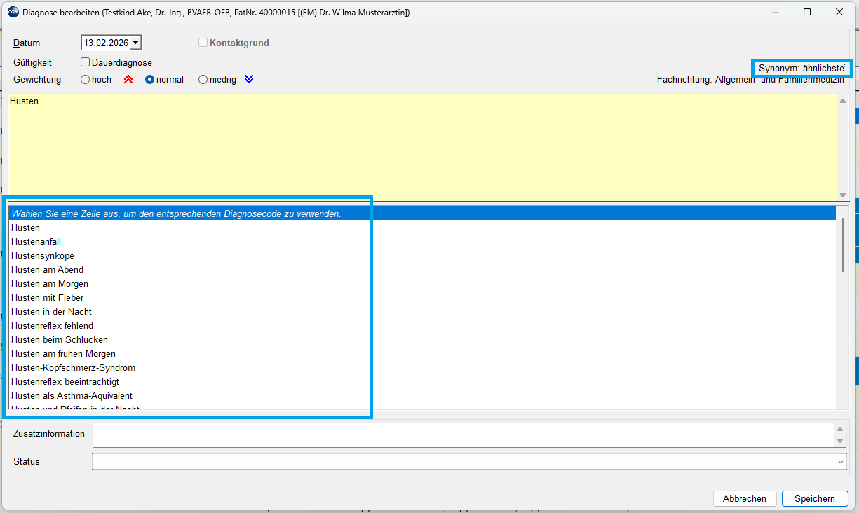 - Diagnoseeingaben Synonyme zur Auswahl anbieten