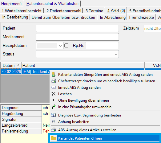 ABS - Kartei des Patienten öffnen
