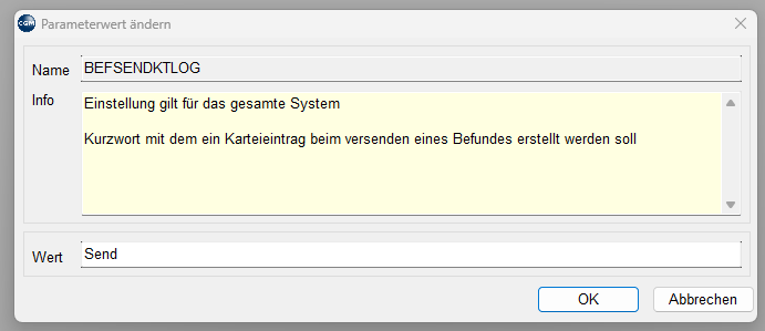 Dieser Karteieintrag kann über den Parameter BEFSENDKTLOG bearbeitet werden.