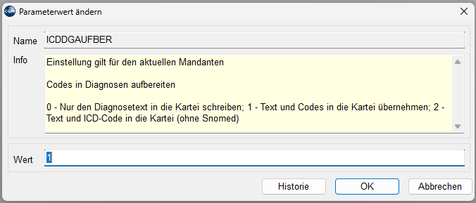 Damit lässt sich steuern, ob beispielsweise der ICD-10-Code und der SNOMED-CT-Code in der Kartei angezeigt werden soll.