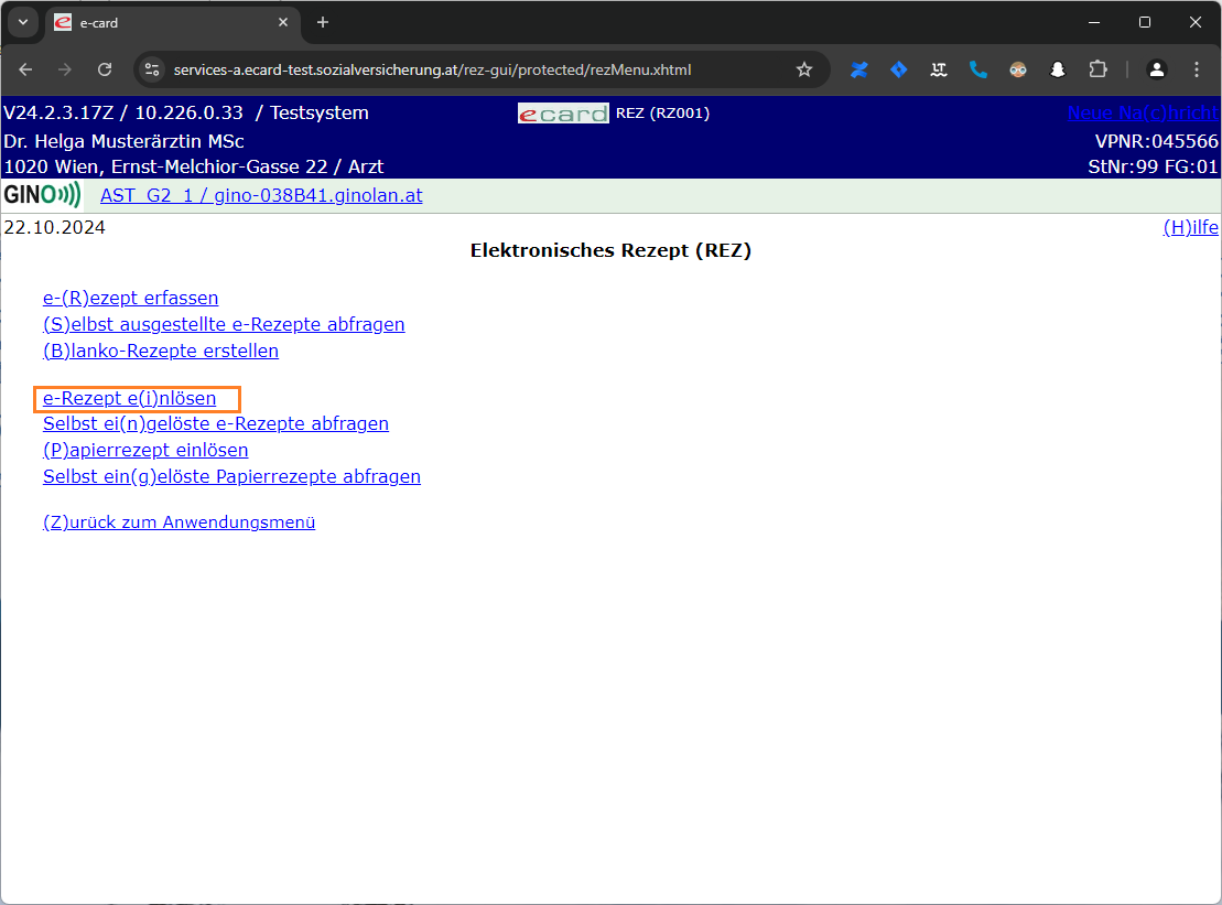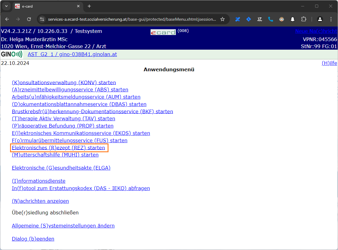 Wählen Sie "Elektronisches (R)ezept (REZ) starten"