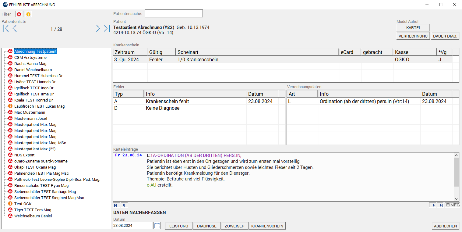 Nähere Details zum neuen Fehlerprotokoll und wie es aktiviert werden kann, finden Sie in der "QUICKINFO Leistungsabrechnung - Fehlerprotokoll".