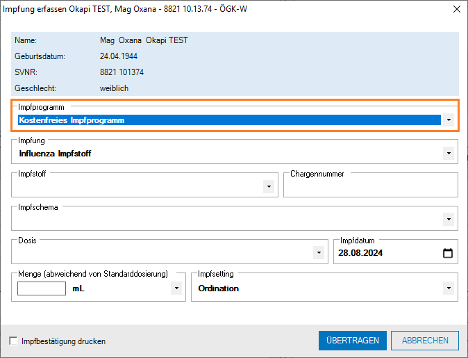 Beim Eintragen von neuen Impfungen kann im Anlassfall ein Impfprogramm vermerkt werden.