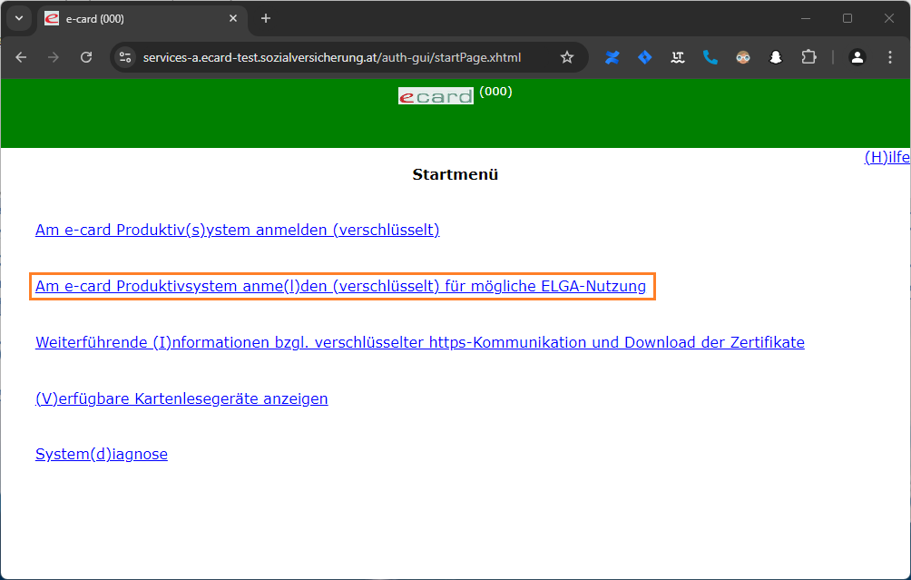 Wählen Sie "Am e-card Produktivsystem anme(l)den (verschlüsselt) für mögliche ELGA-Nutzung"