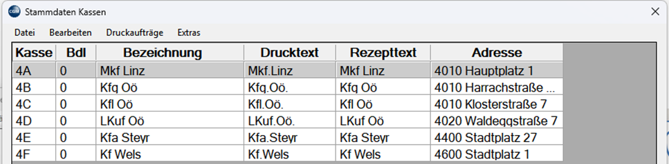 Falls Sie in der Tabelle „Stammdaten Kassen“ die Spalte „Vtr“ nicht sehen: