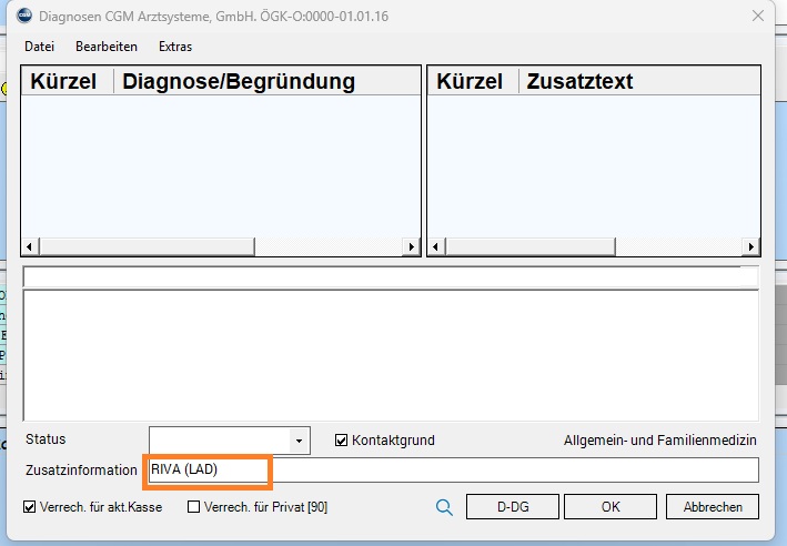 Zu einer Diagnose können im Anlassfall Zusatzinformationen erfasst werden.