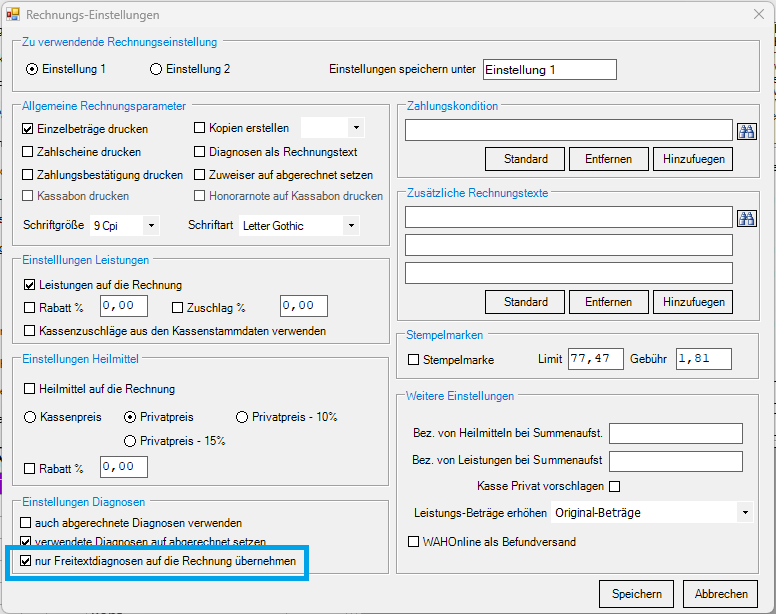 Information: Diese Einstellung gilt für die Fenster Medikamente, Magistrale, Zuweiser, Leistungen und Diagnosen.