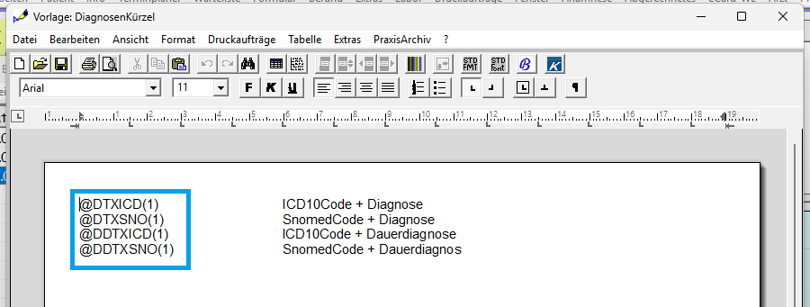 - @DDTXICD – ICD10Code + Dauerdiagnose