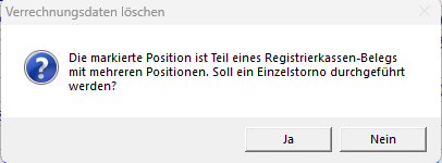 Wird ein Medikament gelöscht, das sich auf einem Beleg mit weiteren Medikamenten befindet, wird ein Auswahlfenster zur Einzelstornierung angezeigt.