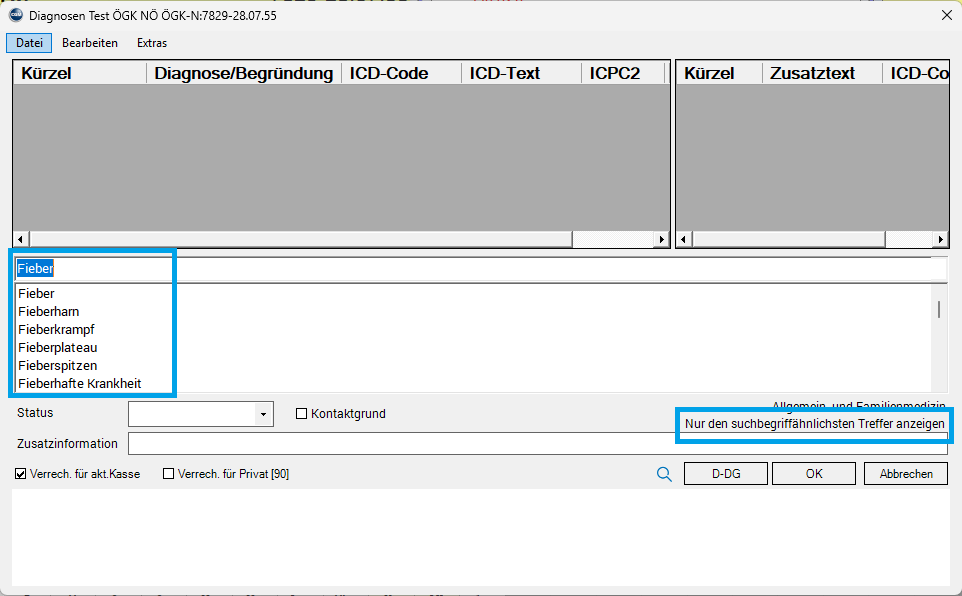 - Es ist nun möglich eine Diagnose aus einem Text zu kopieren und in die Suche einzufügen.